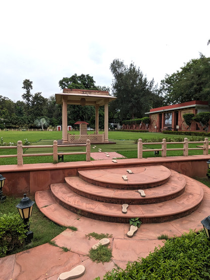 Look for the footprints that lead out along the garden. These were the last steps taken by Gandhi before his tragic death.